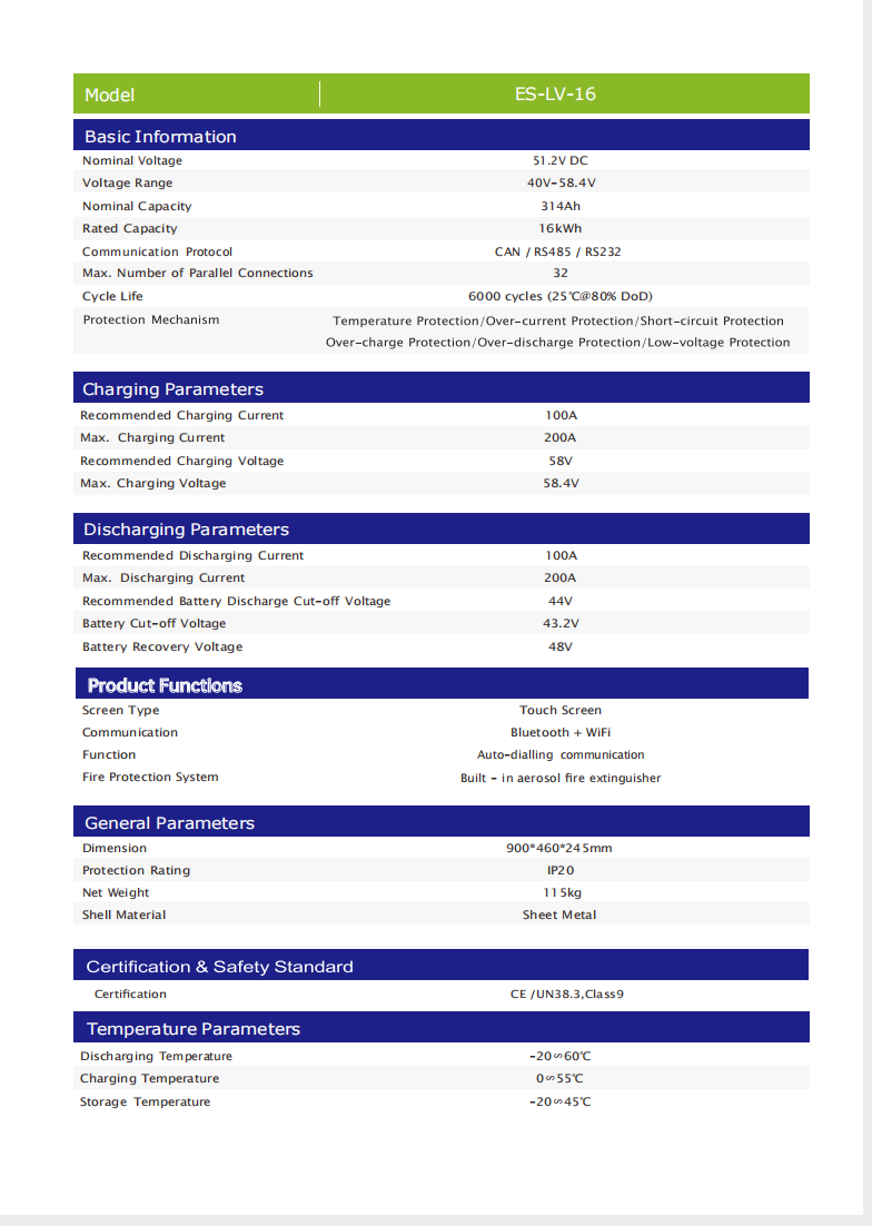 Pin lưu trữ APESS 16kWh (ES-LV-16) là giải pháp lưu trữ điện thông minh, bền bỉ và an toàn. Với dung lượng lớn, tuổi thọ cao, khả năng kết nối linh hoạt và dịch vụ hậu mãi trực tiếp từ Cergy, sản phẩm này là lựa chọn tối ưu cho nhu cầu năng lượng bền vững tại Việt Nam.