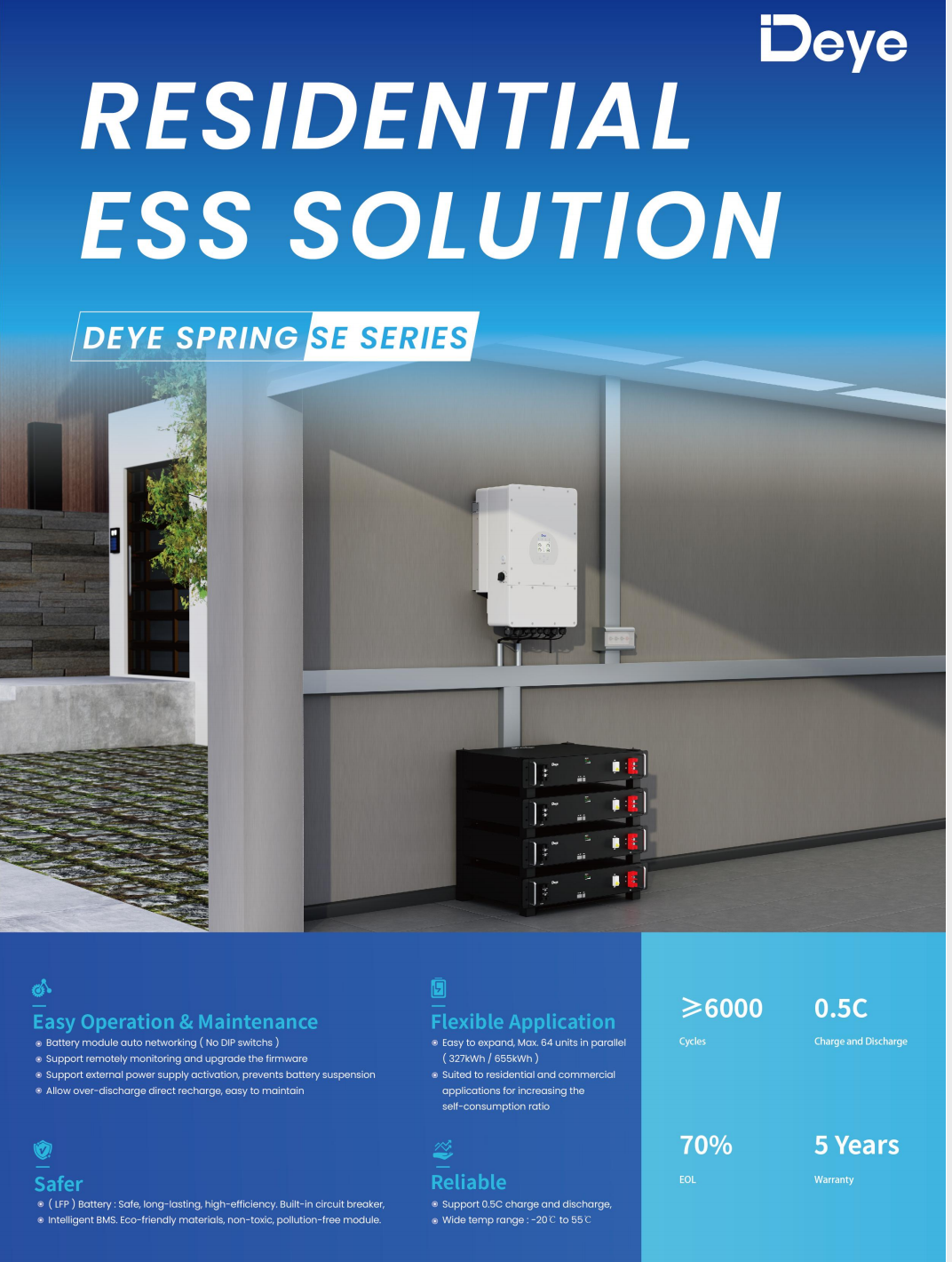 Là một phần của dòng sản phẩm ESS Spring SE Series đến từ thương hiệu Deye danh tiếng, pin SE-G10.2 được thiết kế cho các hộ gia đình, biệt thự và doanh nghiệp nhỏ có nhu cầu sử dụng điện cao. Với dung lượng 10.24kWh, đây là “ngân hàng năng lượng” đáng tin cậy, cung cấp điện sạch cho mọi sinh hoạt và hoạt động kinh doanh.