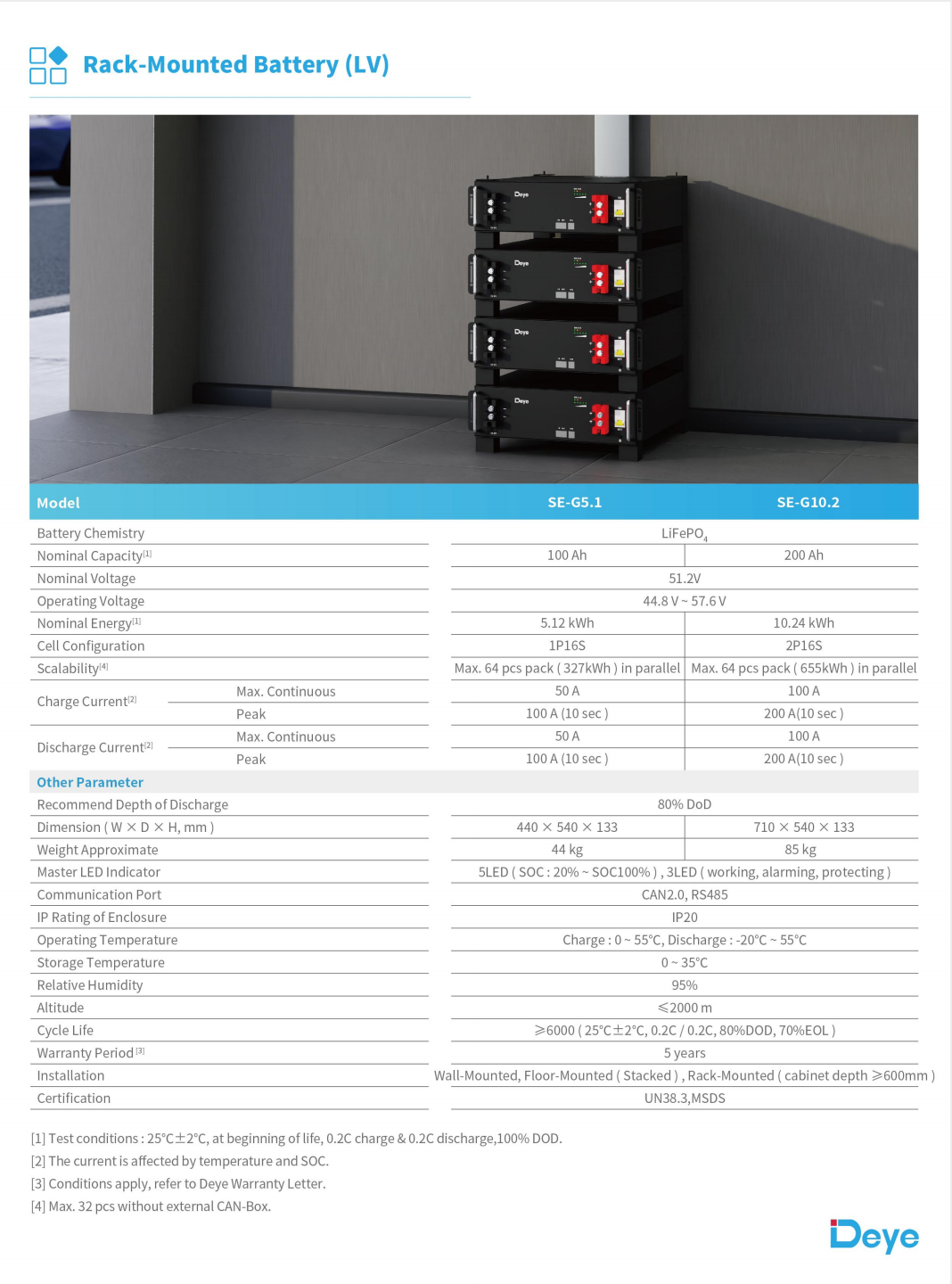 Với khả năng sạc và xả liên tục ở mức 0.5C (100A), Deye SE-G10.2 đáp ứng nhanh chóng và hiệu quả:
